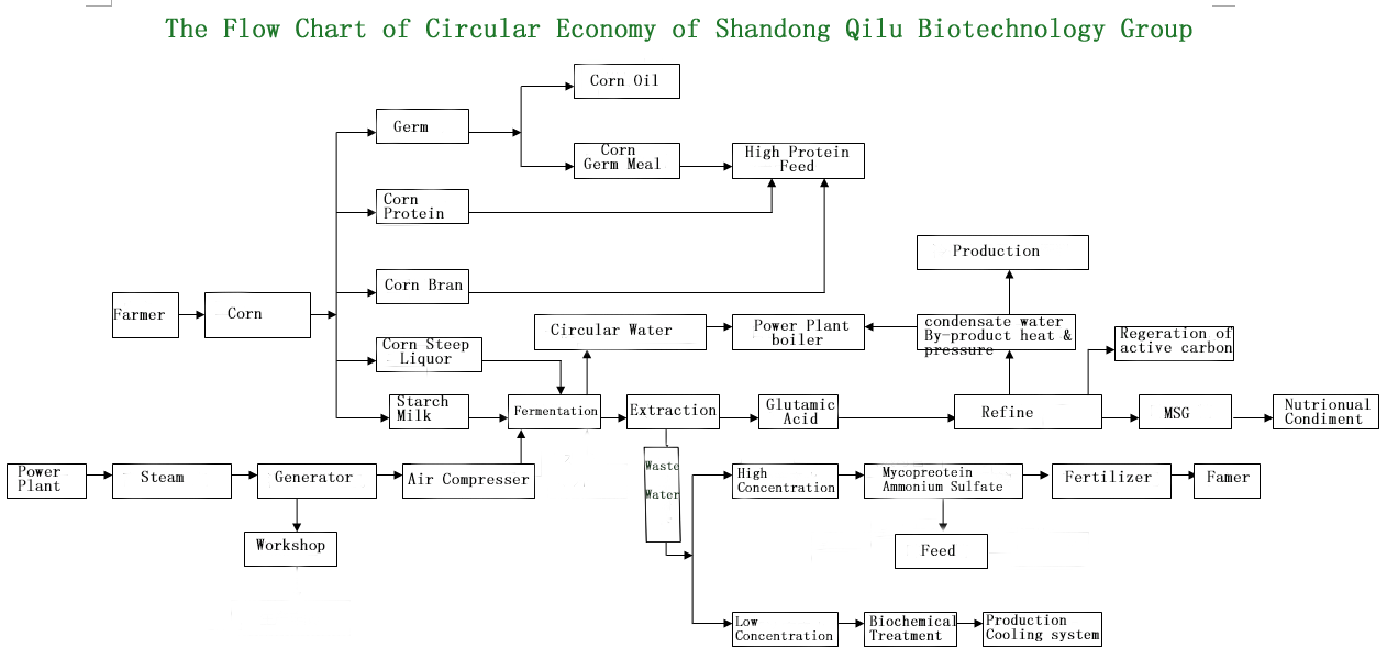 Company always adhere to the short-term goals and long-term planning, and the combination of economic and social benefits, build a conservation-minded enterprise development road, from the key link and minute details, rely on scientific and technological progress, technological innovation, continuous extension of industry chain, is beginning with corn, constructed the "farmers, corn, starch, fermented biological products, fertilizer, feed - customer", "raw coal production of electricity, steam, to produce the blues coal, slag, fly ash brick", "corn starch wastewater biogas, biogas power generation" the cycle of development patterns and industrial chain. In the process of corn processing, protein feed is produced by soaking water, corn husk, germ, protein powder, starch residue, sugar residue and bacteria protein. The organic waste water produced by fermentation produces high efficiency organic fertilizer. Production of new building materials from fly ash and slag produced by self-owned power plant; Each link of the waste are the effective control and utilization of all realize the comprehensive utilization of resources, conversion rate reached 119%, corn production got recycling waste heat pressure in the process, to realize the resources, make full use of energy.