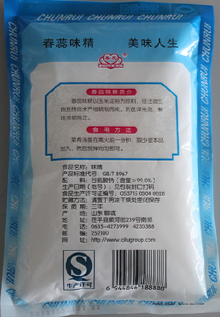 Company's "Chun Rui" brand name products in Shandong MSG, monosodium glutamate traditional production based on the use of high technologies developed from a new generation product. Modern means of its fermentation process, saccharification technology, education and other electric crystal, cooling separation, and in addition to iron, bleaching, crystallization and a series of production process using computer-controlled, artificial and meet consumer lifestyle from the visual and taste, etc. .